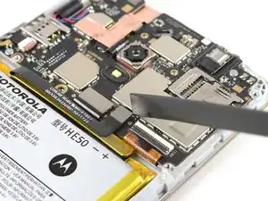 Краем лопатки подденьте и отключите гибкий кабель аккумулятора от материнской платы.