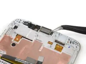Пинцетом поднимите динамик устройства ввода речи из посадочного места и снимите его.