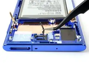 Используйте острый конец лопатки, чтобы отключить разъём катушки зарядки S-Pen от материнской платы.
