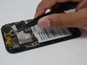 Удалите динамик с помощью пинцета, захватив каждую сторону и потянув вверх.