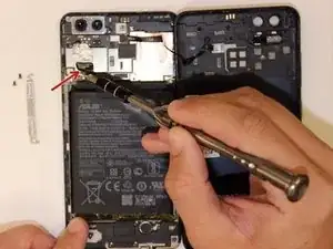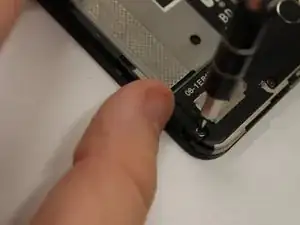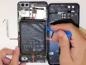 Нижняя сторона аккумулятора приклеена, поэтому аккуратно подденьте аккумулятор, чтобы не повредить его.