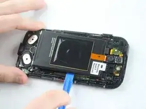 С помощью пластикового инструмента для открытия приподнимите аккумулятор.