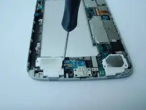 Используя пластиковый инструмент для вскрытия, начните в месте, где находится S-Pen, и аккуратно приподнимите угол.