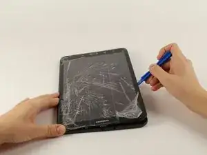 Когда пластиковый инструмент полностью вставлен, двигайте им вдоль краёв устройства, чтобы разделить панели.