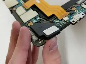 Второй модуль динамика расположен в нижнем правом углу устройства. Он прикреплён к вибромотору, обеспечивающему тактильную отдачу планшета.