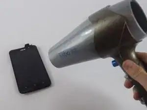 Используя фен или термофен, нагрейте клей, который удерживает дисплей в корпусе. Клей проходит по краям дисплея.