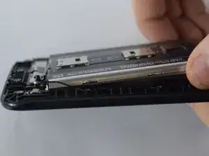 Осторожно извлеките аккумуляторный блок из телефона вручную. Аккумулятор приклеен полосой клея с верхней стороны, поэтому может потребоваться небольшое усилие.