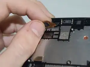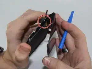 С помощью пластикового инструмента отогните кабель дисплея от корпуса телефона.