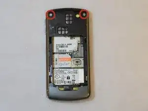 После снятия крышки батареи найдите два винта Torx #T6 длиной 7,5 мм в верхней части телефона. Удалите их, поворачивая против часовой стрелки отверткой T6.