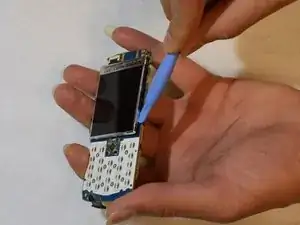Передняя панель готова к отсоединению от остальной части телефона. Подденьте переднюю часть (с клавиатурой и экраном) и отведите её от платы телефона пальцами.