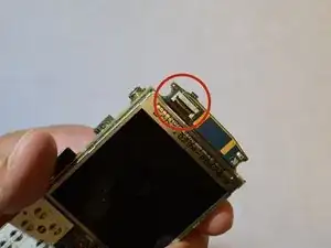Снимите кабель дисплея, потянув его вниз к центру платы и выведя из‑под чёрной защёлки. Используйте лопаточку вдоль всех сторон между дисплеем и платой, чтобы отделить дисплей.
