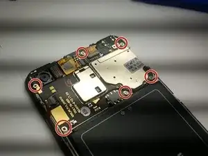 После удаления соединителей найдите шесть винтов Philips со стороны материнской платы и удалите их.
