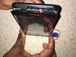 Используйте инструмент для поддевания, чтобы полностью отсоединить дисплей от телефона.
