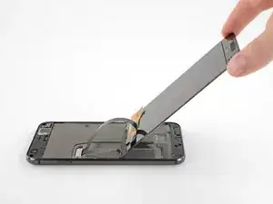 Пока не пытайтесь полностью удалить дисплей, так как он всё ещё соединён гибким кабелем. Будьте осторожны, не создавайте нагрузку на кабель при перемещении дисплея.