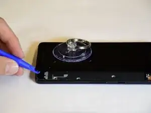 Отделите дисплей от корпуса, вставив пластиковый монтажный инструмент между ними и проведя им по периметру дисплея.