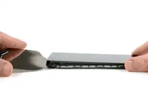 Используйте iOpener, чтобы ослабить клей под дисплеем. Сосредоточьтесь на верхней и нижней частях.
