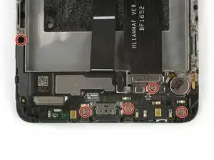 Удалите пять винтов Phillips #00, которые фиксируют дочернюю плату и динамик на месте.