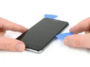 После того как вы полностью провели лопатку вокруг телефона, проверните её в верхней части, чтобы отделить дисплей от рамки.