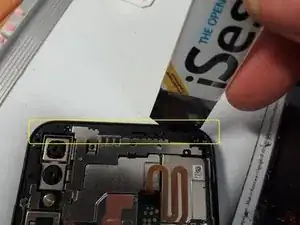 Аккуратно переверните крышку на правую сторону телефона, так как к задней крышке прикреплен кабель для датчика отпечатков пальцев.