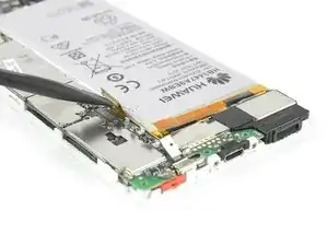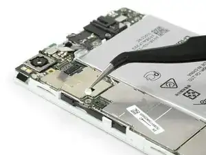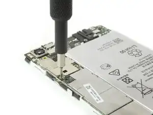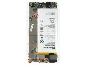 Открутите четыре винта Phillips #00, которые крепят плату смартфона Huawei P8.