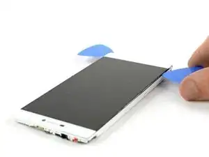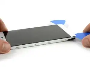 Вставляйте только кончик медиатора и проведите им вдоль правой стороны, чтобы отделить дисплей от рамки.