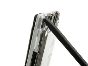 Вставьте медиатор для вскрытия в зазор, где вы отделили дисплей от средней рамки.