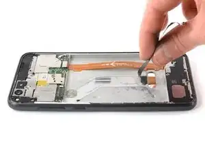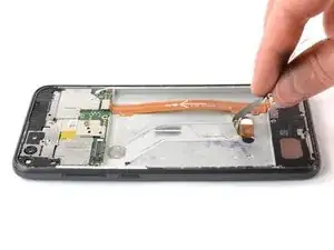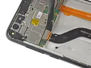 Постарайтесь пока не снимать дисплей! Шлейф дисплея всё ещё проходит через рамку.