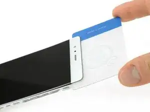 Поместите пластиковую карточку или два медиатора для вскрытия под ободок дисплея вверху, между экраном и рамкой. Это предотвратит повторное склеивание.