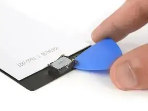 Используйте iOpener, чтобы размягчить клей, затем вставьте медиатор между динамиком и дисплеем и аккуратно снимите разговорный динамик.