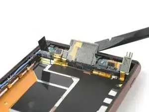 Поднимите основной шлейф, покрывающий корпус динамика, с помощью лопатки.