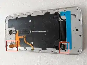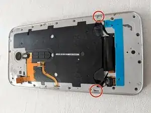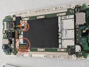 Необходимо отсоединить два шлейф-коннектора: питание аккумулятора и подсветку вспышки.