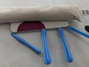 Продвигаясь по периметру, используйте инструменты, чтобы постепенно отделить заднюю панель от клея. Можно также использовать медиатор или что-то подобное, чтобы зафиксировать зазор между панелью и клеем.