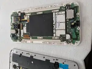 В результате останутся две части: задняя рамка с аккумулятором и передняя сборка с материнской платой и модулем дисплея.