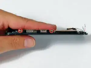 Выверните два винта Phillips #00 с правой стороны сборки дисплея.