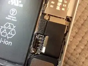 Удалите четыре винта с защитного экрана, закрывающего разъемы сборки дисплея. Поднимите разъемы с помощью нейлоновой лопатки.