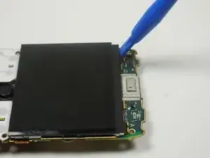 С помощью пластикового инструмента для вскрытия аккуратно подденьте ленточный разъём, расположенный с левой стороны платы.