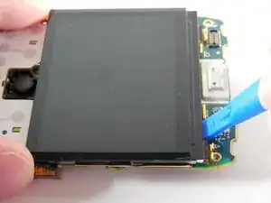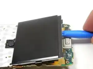 С помощью пластикового инструмента для вскрытия отожмите ЖК-дисплей от платы.