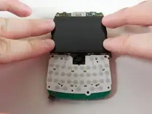Экран удерживается на плате двумя прочными клеевыми подушечками. Придётся приложить усилие. Не бойтесь повредить плату — экран отойдёт задолго до того, как плата сломается.