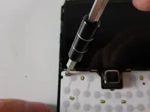 Используйте отвертку T5 Torx, чтобы открутить два чёрных винта Torx длиной 5,57 мм под клавиатурой.