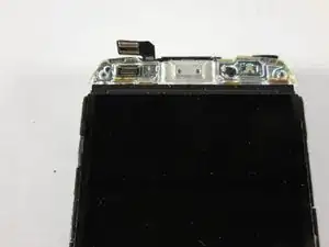 С помощью пластикового инструмента для вскрытия аккуратно отогните две золотые металлические скобы в верхней части дисплея.