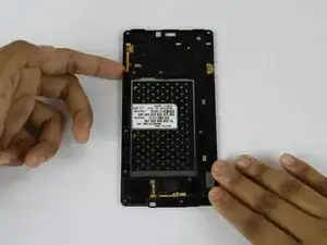 Отсоедините ЖК-экран от материнской платы с помощью пластикового инструмента для вскрытия.