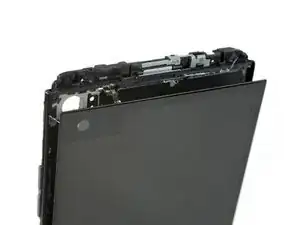 Не поднимайте дисплей сразу после того, как вы разрежете клей по всем сторонам. Два кабеля дисплея всё ещё проходят через среднюю рамку телефона.