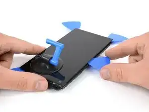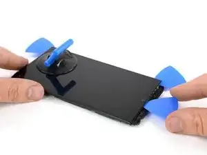 Используйте присоску, чтобы приподнять верхний край дисплея до тех пор, пока вы не сможете вставить наконечник лопатки для вскрытия.