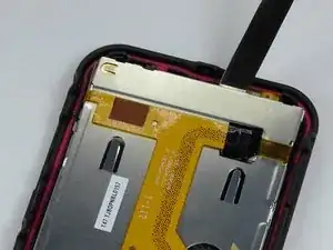 Вставьте металлическую лопатку между дисплеем и корпусом телефона.