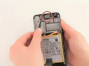 Аккуратно снимите заднюю крышку. Не тяните слишком сильно, так как она по-прежнему соединена с датчиком отпечатков пальцев внутри телефона.