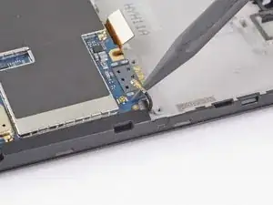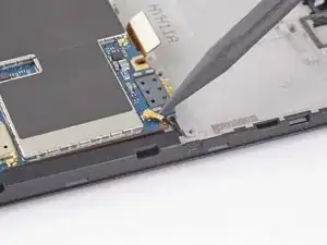 Используйте пинцет, чтобы вытащить плоский кабель кнопки прямо из разъёма.