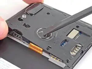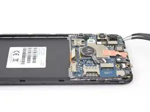 Используйте пинцет, чтобы отогнуть наклейку, закрывающую кнопки регулировки громкости.
