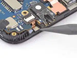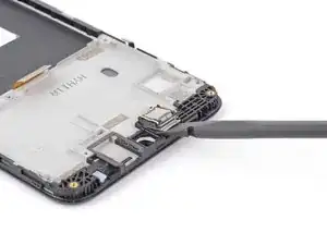 Вставьте плоский конец лопаточки под слуховой динамик, чтобы отделить его от рамки.