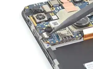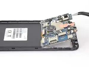 Снимите сборку дочерней платы, включающую вибромотор и разъём зарядки.