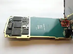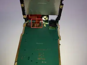 Поднимите нижнюю часть платы дисплея и найдите соединение шлейфа, расположенное в месте пересечения двух плат.